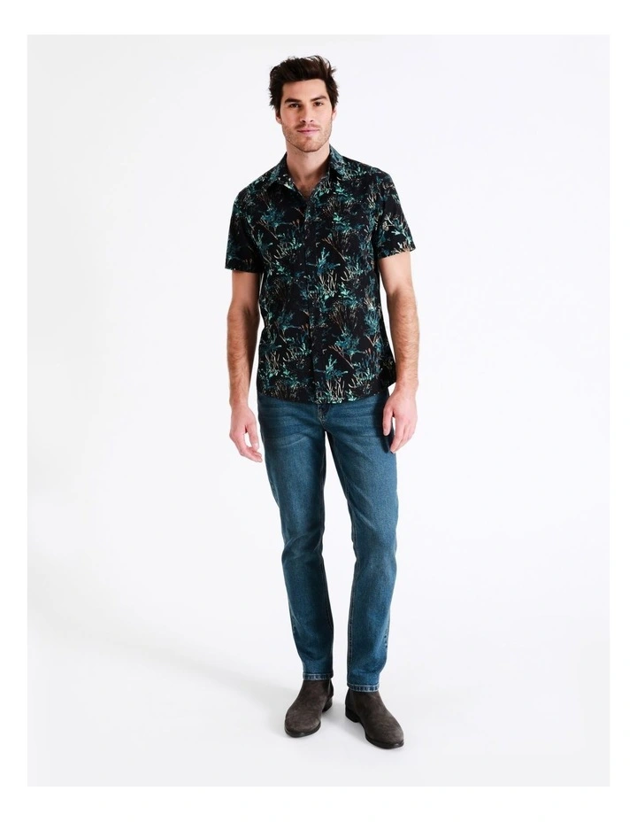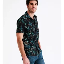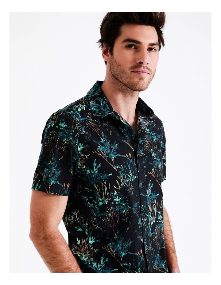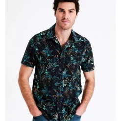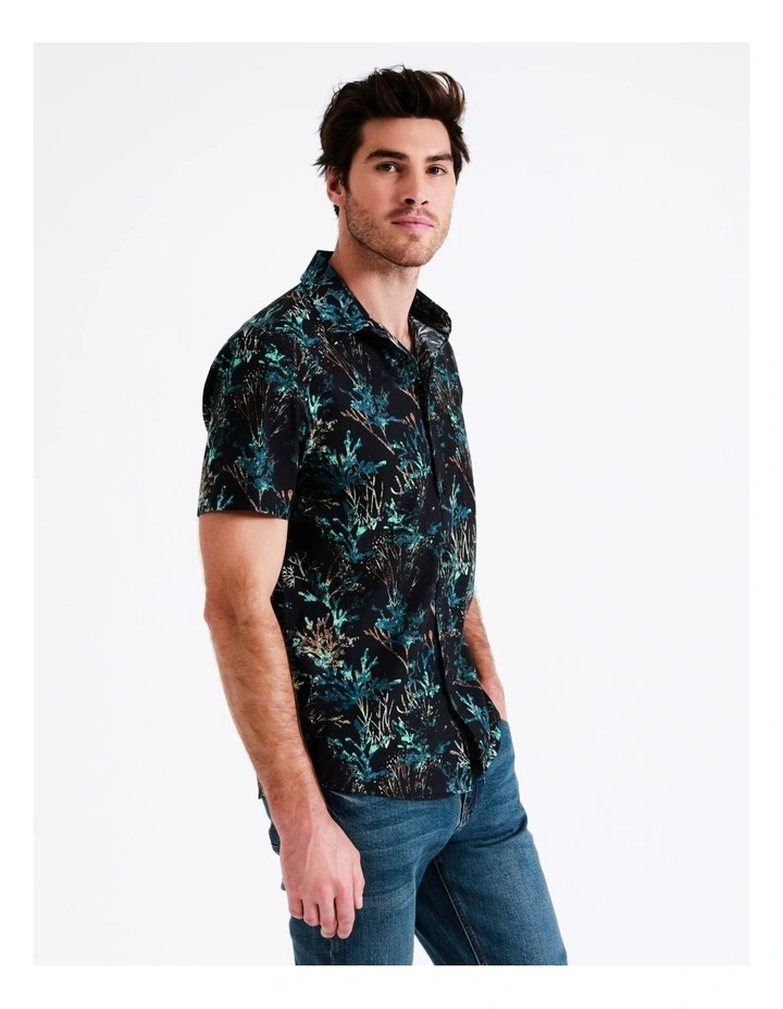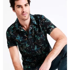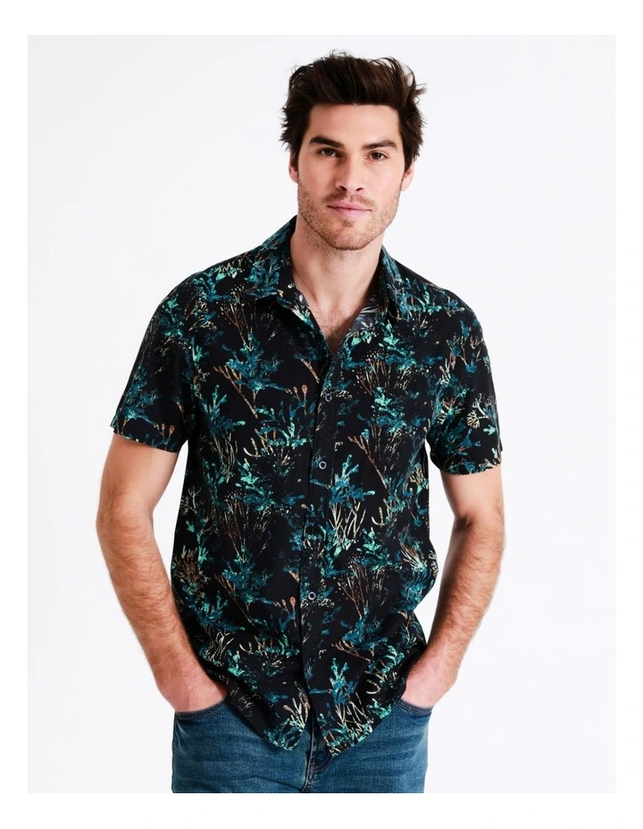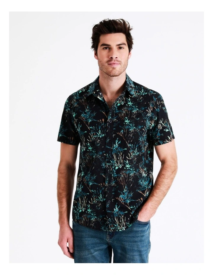 Elevate your look with a short sleeve shirt. This shirt has a regular fit, with a striking all-over print and a button up front. Wear it with your favourite denim for an on-trend fit.