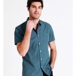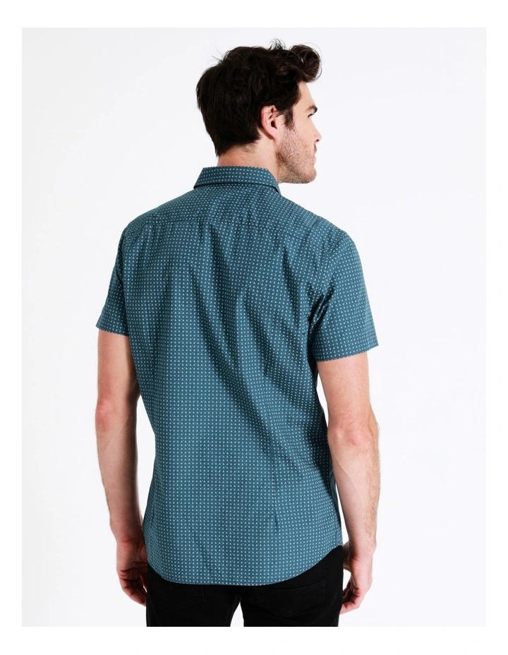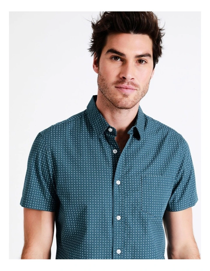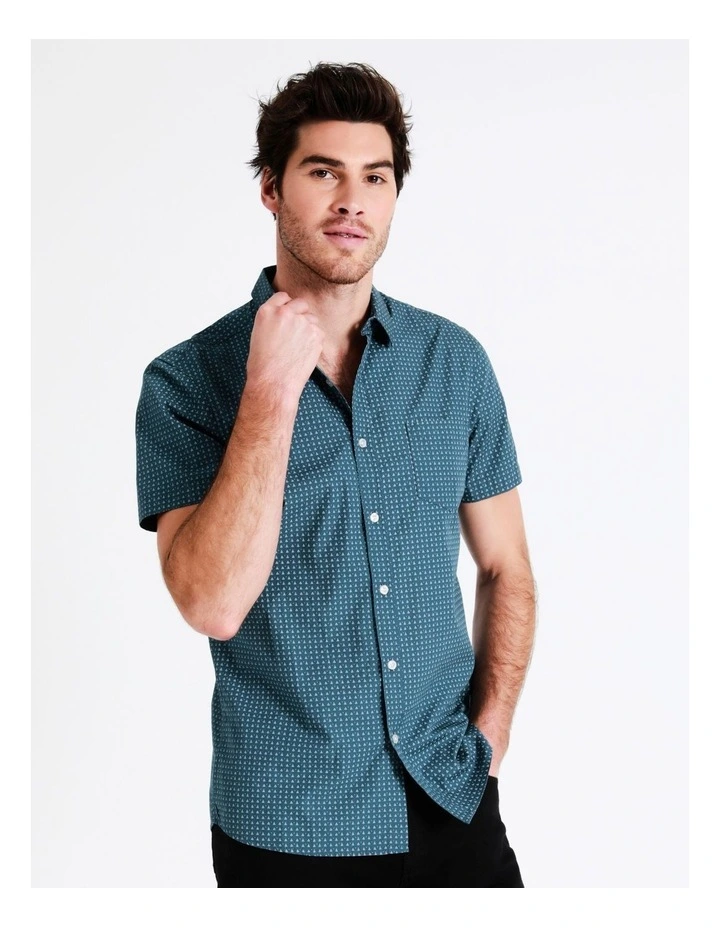 MaddoxΒ Ryan Geo Print Short Sleeve Shirt in Mid Blues