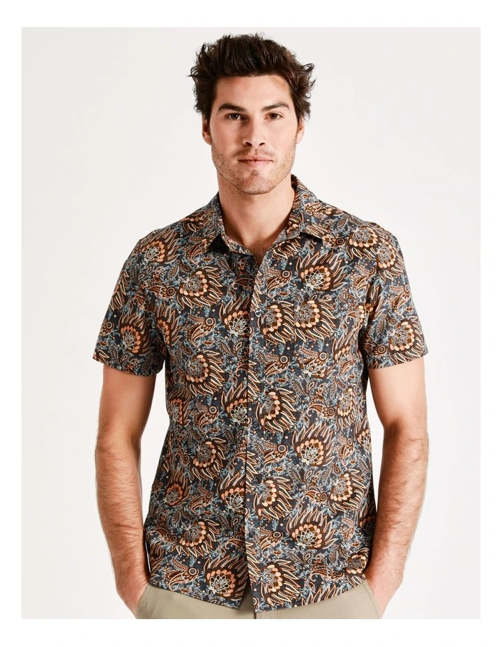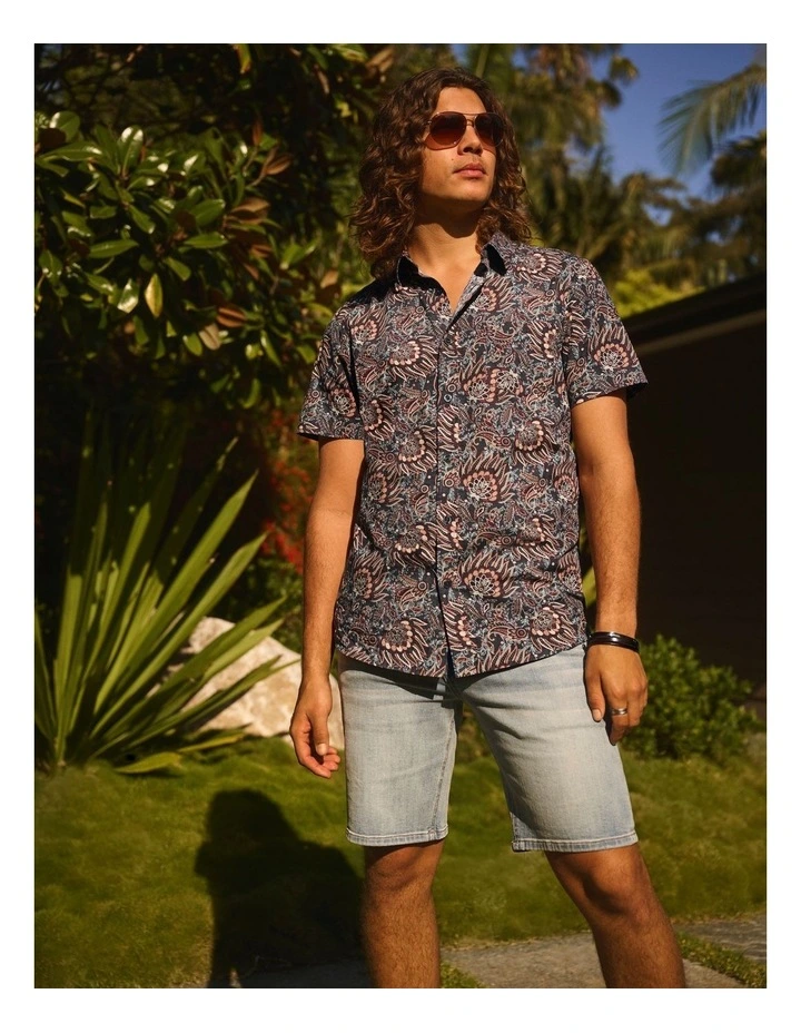 MaddoxΒ Tyagarah Print Short Sleeve Shirt in Navy