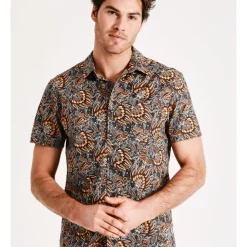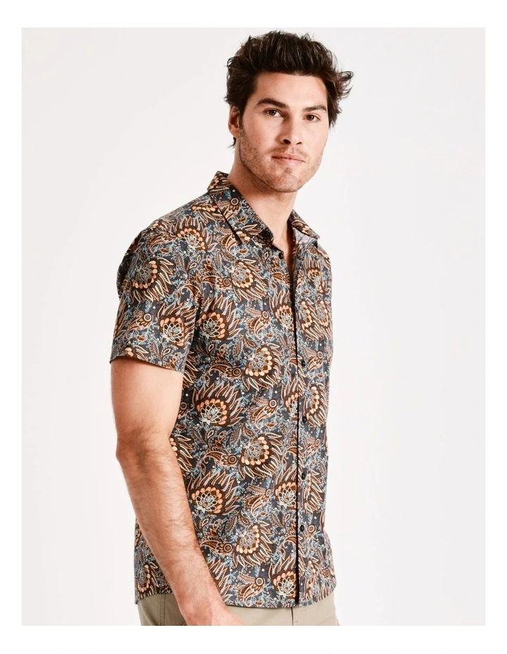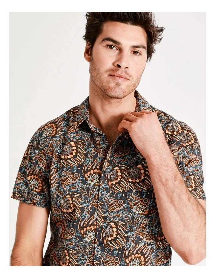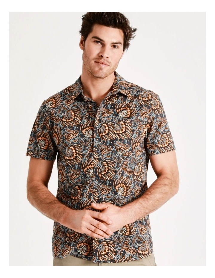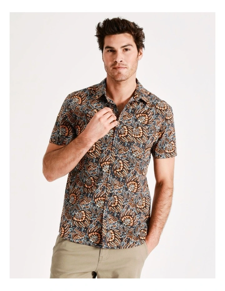 Elevate your look with a short sleeve shirt. This shirt has a regular fit, with a striking all-over print and a button up front. Wear it with your favourite denim for an on-trend fit.