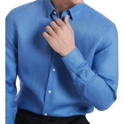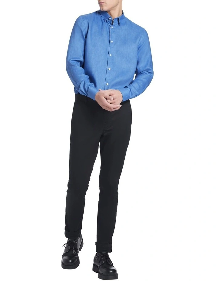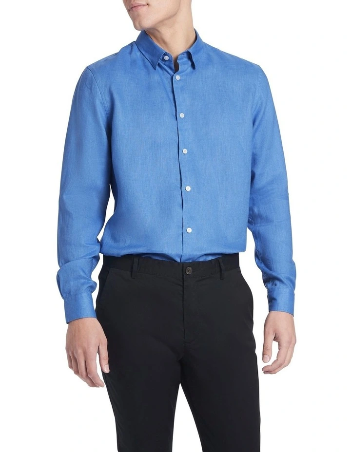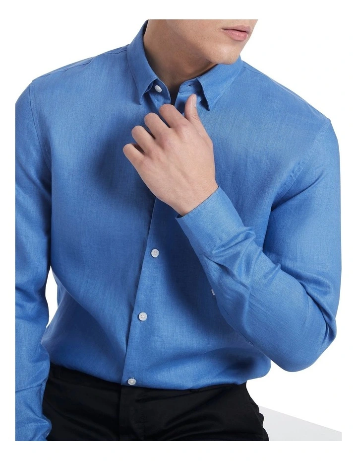 Made from pure linen, this easy fit shirt is both lightweight and breathable, revealing an bright blue colouring. An essential addition to your wardrobe, it can be worn buttoned up or layered over a tee, showing off classic detailing in its soft shirt collar, curved hem shaping, and long sleeves that can be worn rolled up or at the wrist.