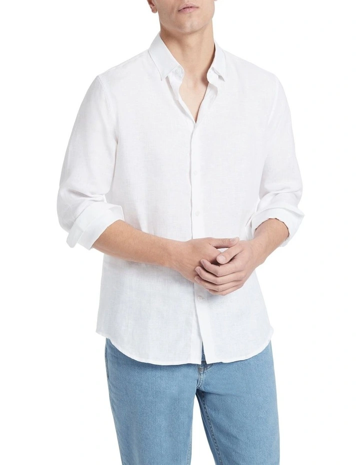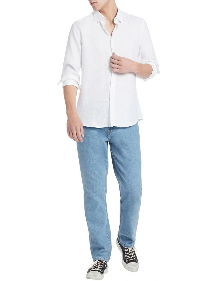 Made from pure linen, this easy fit shirt is both lightweight and breathable, revealing an classic white colouring. An essential addition to your wardrobe, it can be worn buttoned up or layered over a tee, showing off classic detailing in its soft shirt collar, curved hem shaping, and long sleeves that can be worn rolled up or at the wrist.