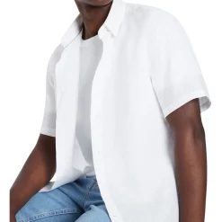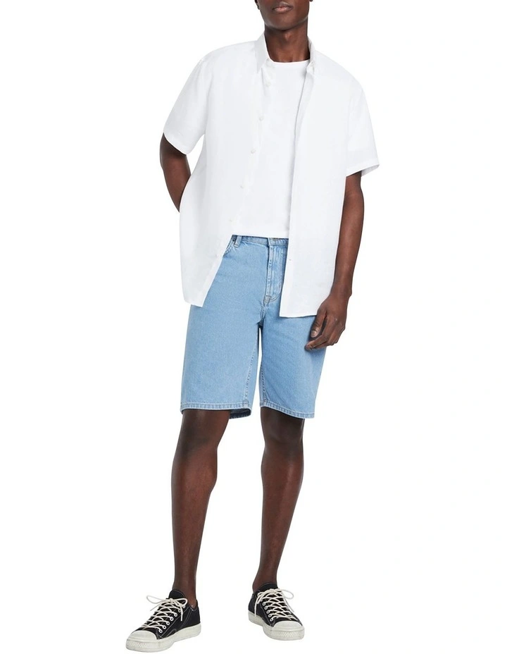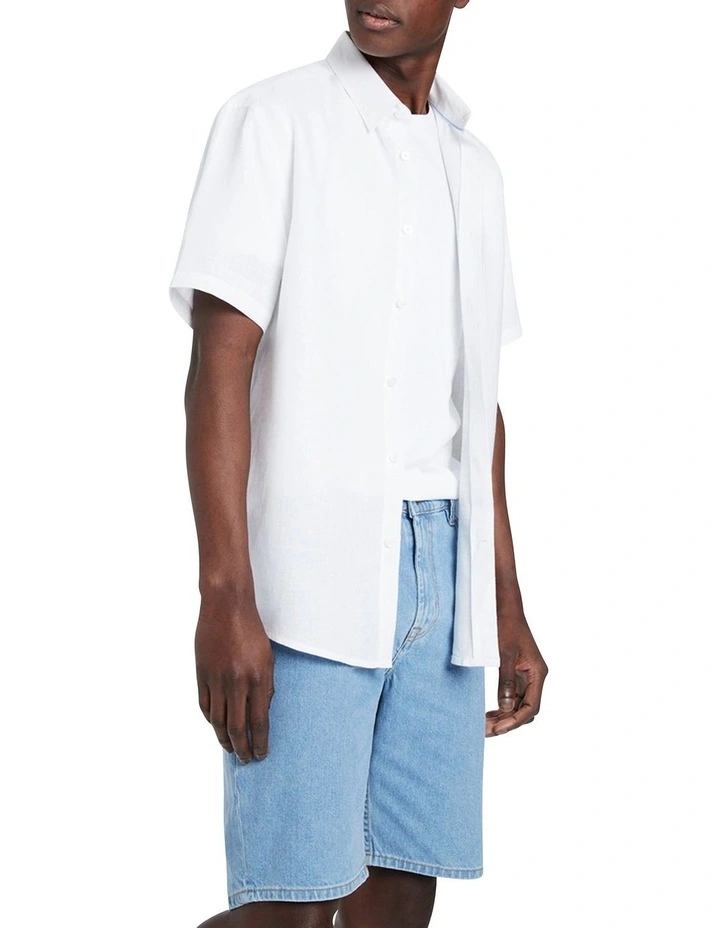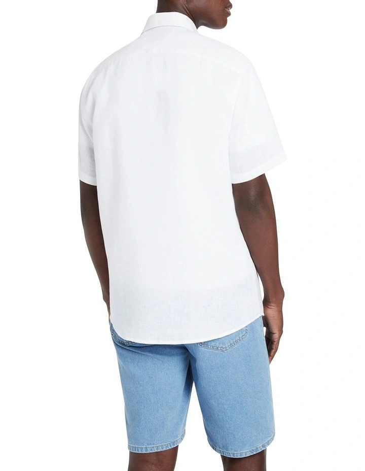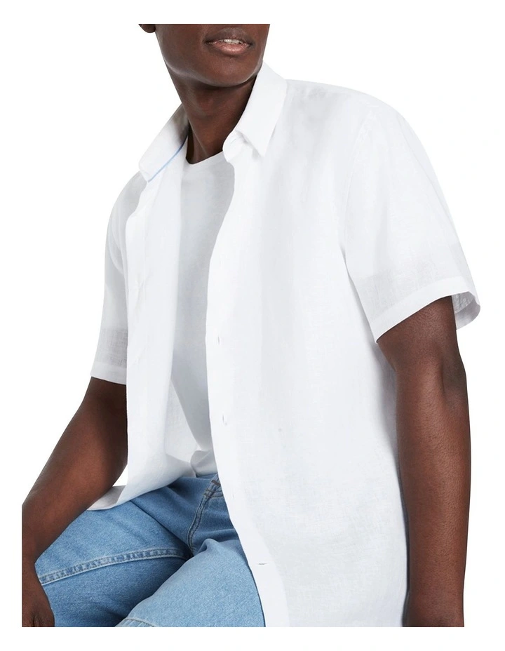Offered in a range of colourways, this short sleeve shirt blends comfort and design, while remaining soft, cool and breathable in lightweight linen. Crisp white in colour, the shirt creates an effortless relaxed fit that can be worn on its own or layered over a tee, revealing design details that include a white button fastening, a sharp shirt collar, and curved shaping at the hem.