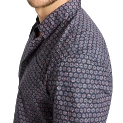 Layered over a tee or worn on its own, this short sleeve shirt remains gorgeously wearable, flaunting an all-over geometric print set against a navy base. Fastening at the front with gunmetal grey Marcs branded buttons, the shirt creates an easy regular fit within lightweight, breathable cotton, finished with a sharp shirt collar, curved hem shaping and a single patch pocket.