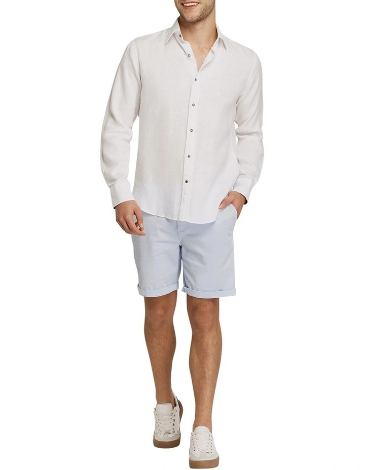 The Bradfield Shirt by M.J. Bale is crafted from a profoundly lightweight European linen cloth that has been dyed in a special method to achieve a delave effect. The premium linen fibres used are sourced from the countryside of France and Belgium and have been crafted to be strong and durable to help keep the shape for years to come.
