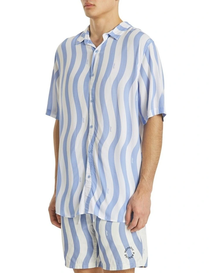 Nomadic Paradise’s custom print graphics adorn this street wear staple. Nomadic’s signature Relaxed Short Sleeve Shirt design effortlessly blends both comfort and style into one must-have wardrobe essential.