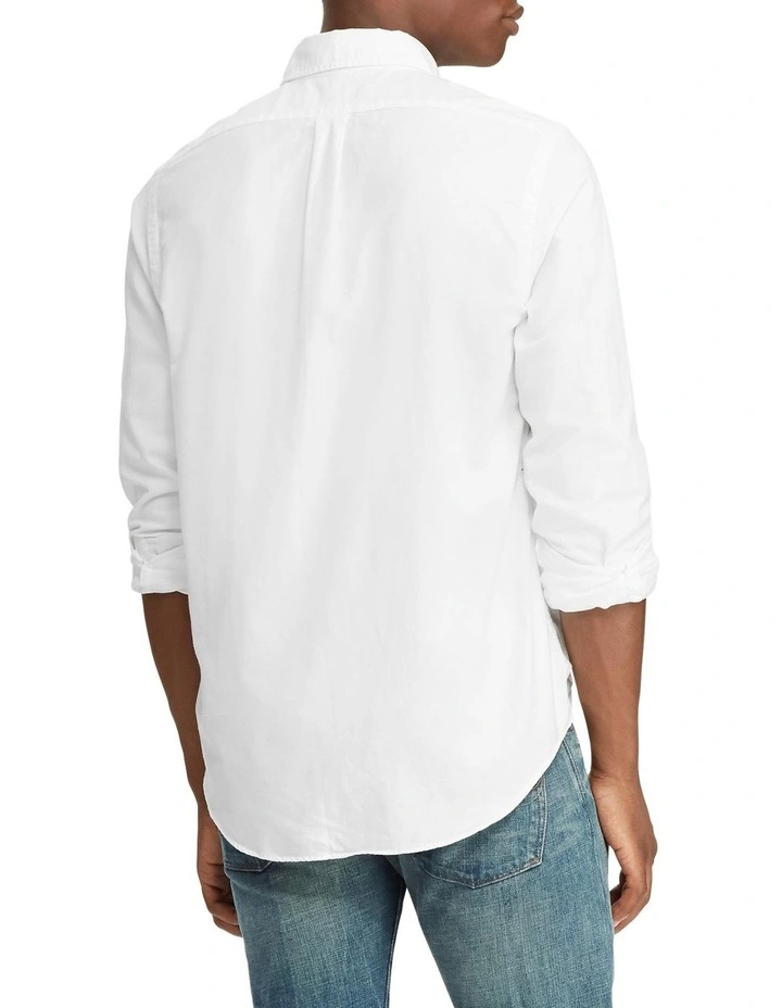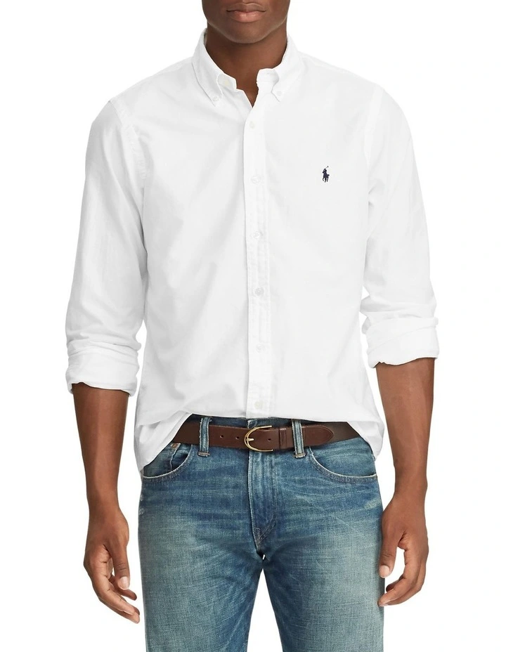 Garment-dyed and washed, this cotton shirt offers a broken-in look and feel from day one.Classic Fit: our roomiest silhouette. Cut for a lower armhole and a fuller sleeve.Size medium has a 31″ back body length, an 18″ shoulder, a 46″ chest, and a 34″ sleeve length. Sleeve length is taken from the center back of the neck and changes 1″ between sizes.Button-down point collar. Buttoned placket.Long sleeves with buttoned barrel cuffs.Split pleated back yoke ensures smooth, contoured shoulders.Signature embroidered pony at the left chest.Cotton. Machine washable. Imported.