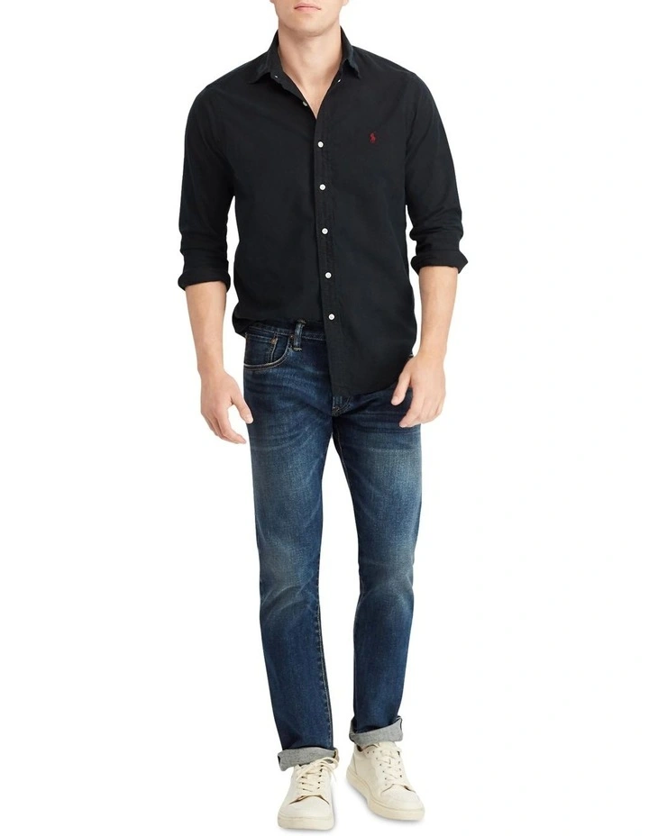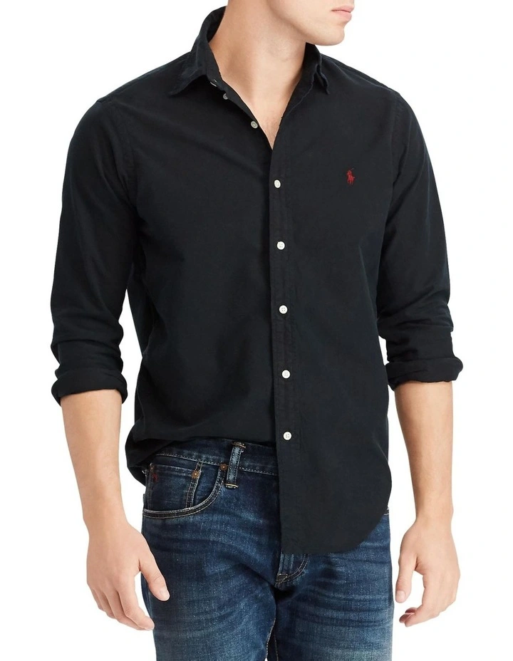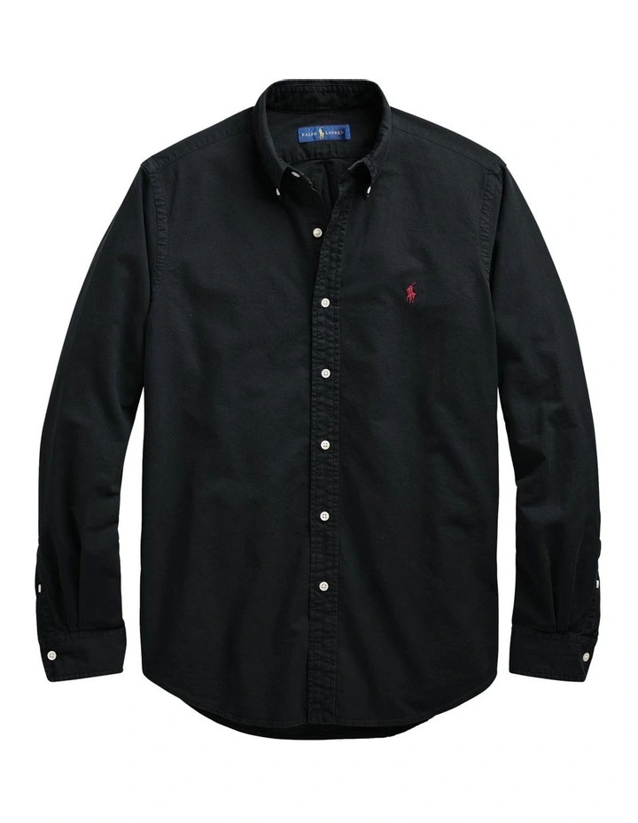 Garment-dyed and washed, this cotton shirt offers a broken-in look and feel from day one.Classic Fit: our roomiest silhouette. Cut for a lower armhole and a fuller sleeve.Size medium has a 31″ back body length, an 18″ shoulder, a 46″ chest, and a 34″ sleeve length. Sleeve length is taken from the center back of the neck and changes 1″ between sizes.Button-down point collar. Buttoned placket.Long sleeves with buttoned barrel cuffs.Split pleated back yoke ensures smooth, contoured shoulders.Signature embroidered pony at the left chest.Cotton. Machine washable. Imported.