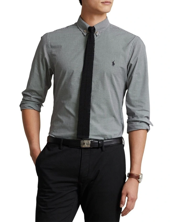 - Button-down point collar. Buttoned placket.