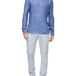 Discount π Blazer Dominic Long Sleeve Linen Stripe π Shirt In Blue/Navy π