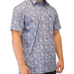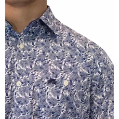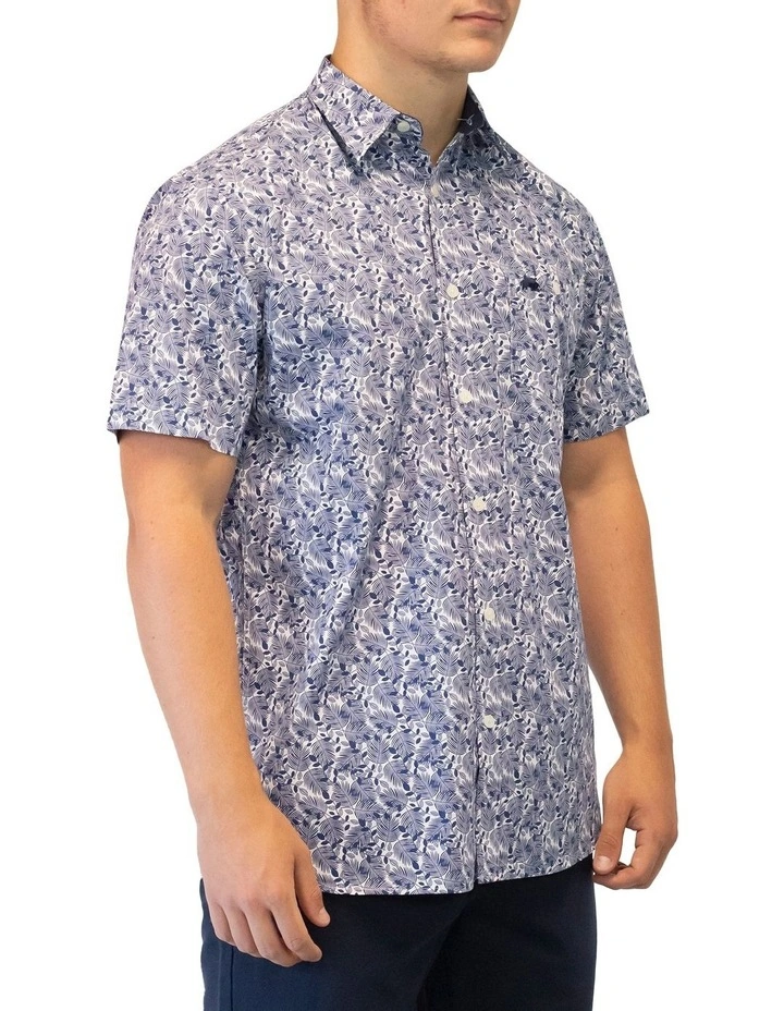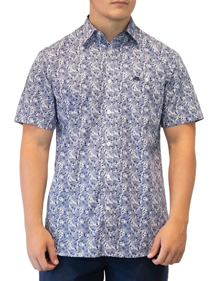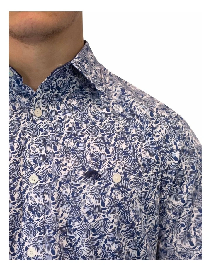 Take a bold step into patterns with a stylish Leaf Print Shirt. Ideal for dressing up those garden BBQs, pair with some navy chino shorts for a slick summer look. Iconic bull logo on the chest.