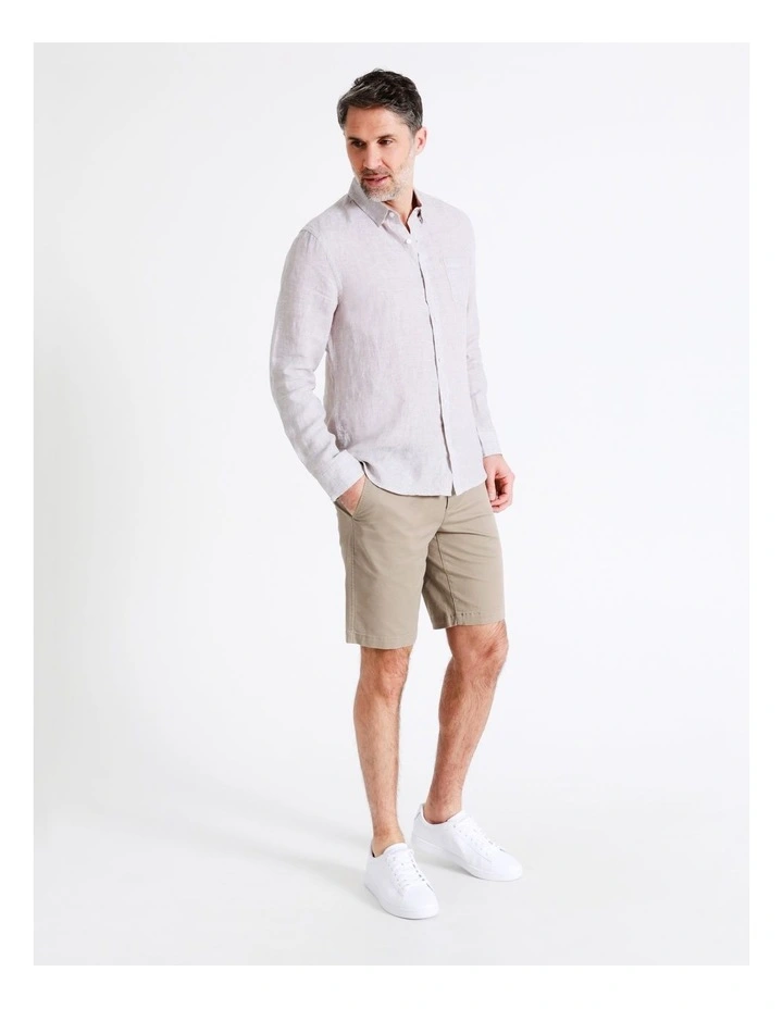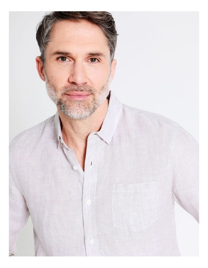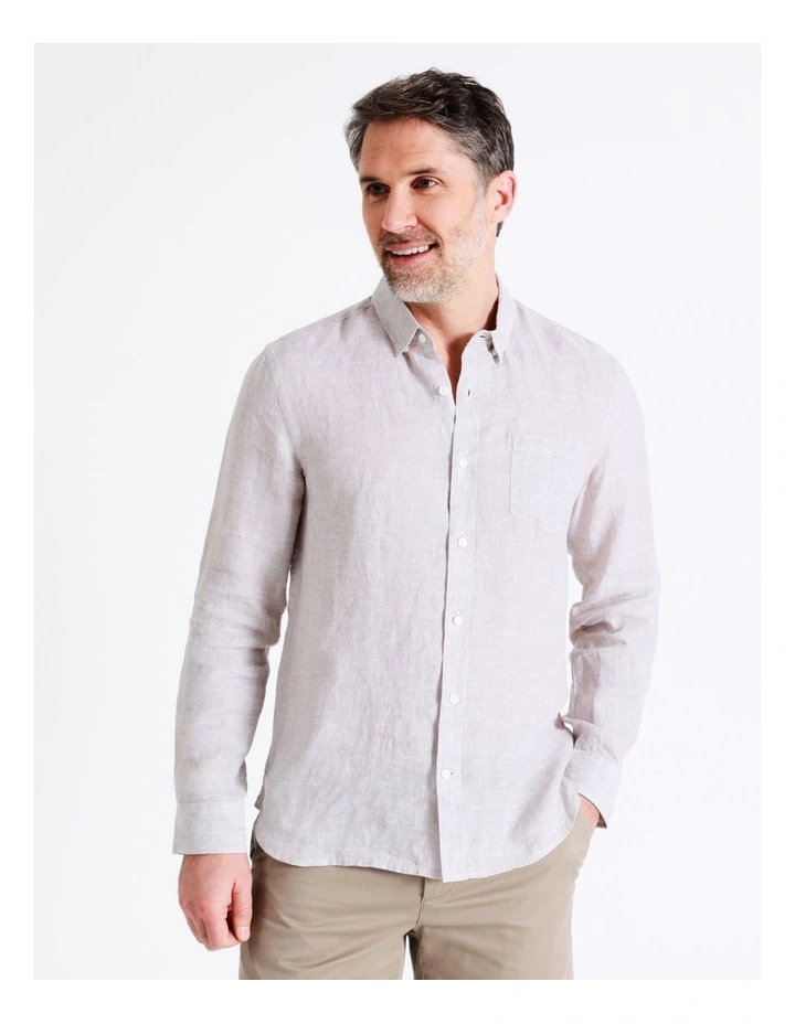 Style a sophisticated look with a linen shirt. This shirt has a regular fit, and is designed with a collared neck and button up front. Pair with your favourite slacks for the perfect casual outfit.