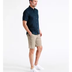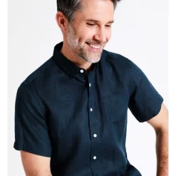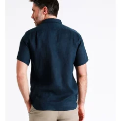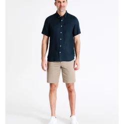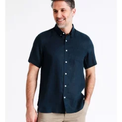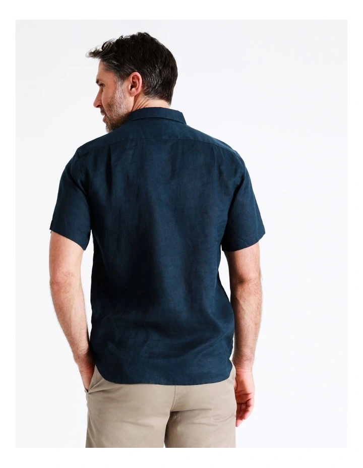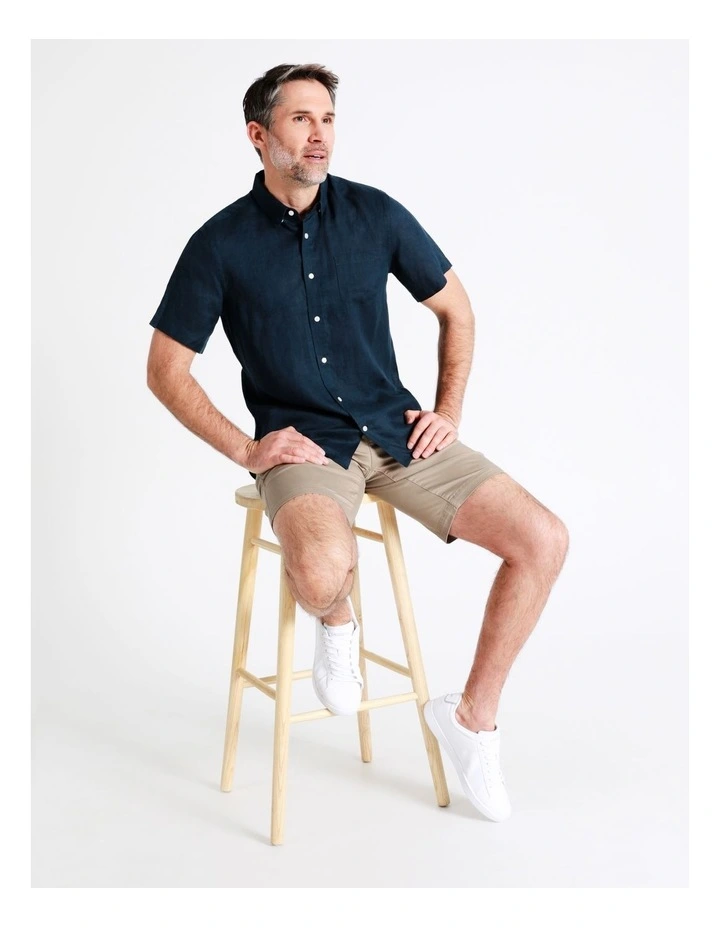 ReserveΒ Bodega Linen Button Down Short Sleeve Shirt in Dark Navy