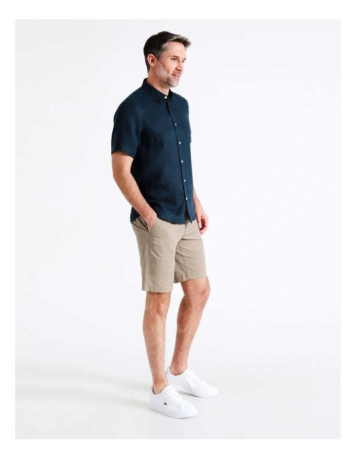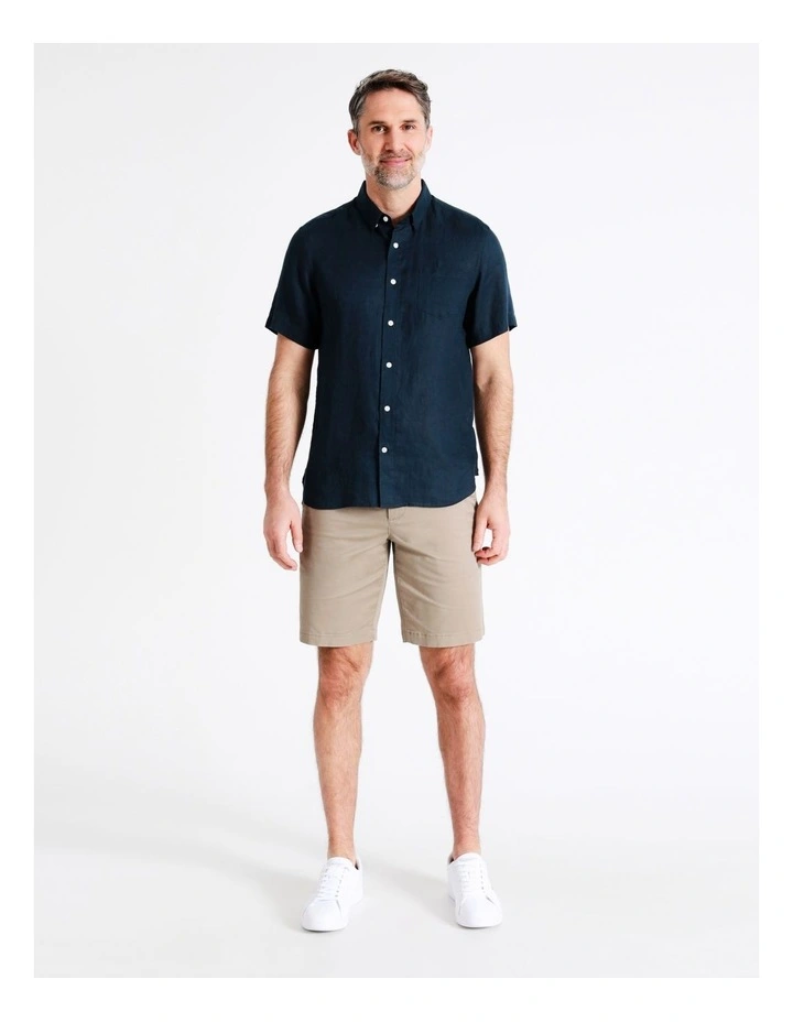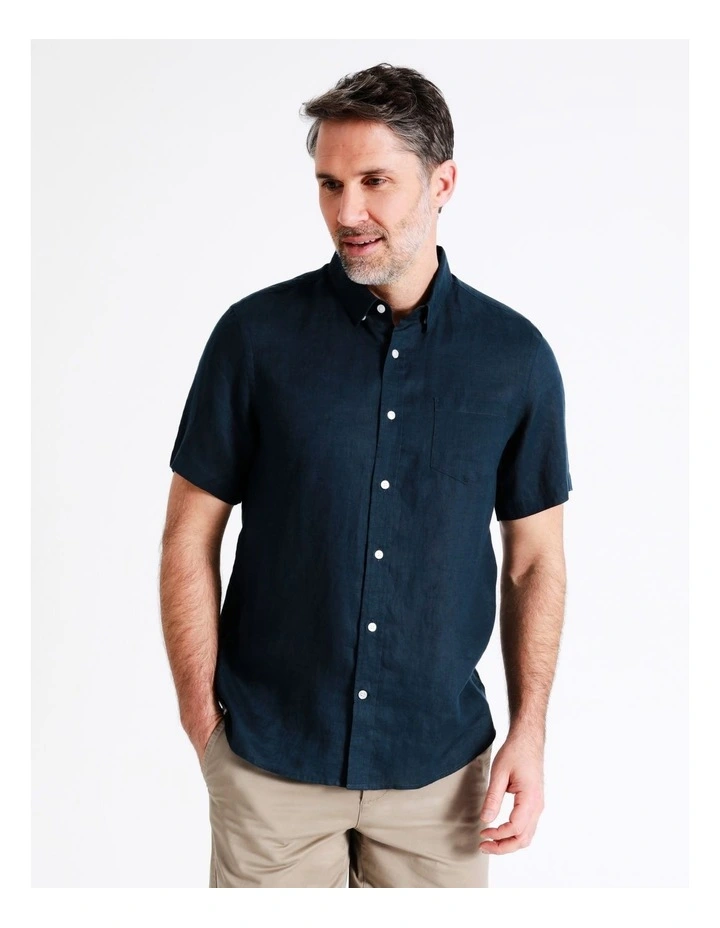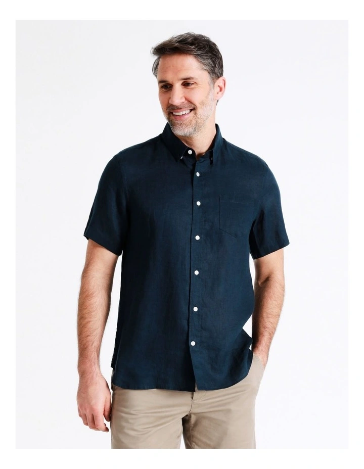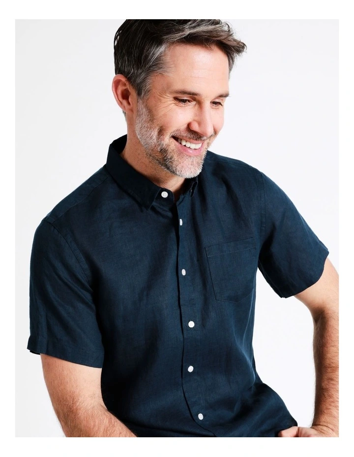 Style a sophisticated look with a linen shirt. This shirt has a regular fit, and is designed with a collared neck and button up front. Pair with your favourite shorts for the perfect casual outfit.