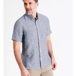 Best Pirce π€© Kenji Lovejoy Linen Blend Short Sleeve π Shirt Navy π