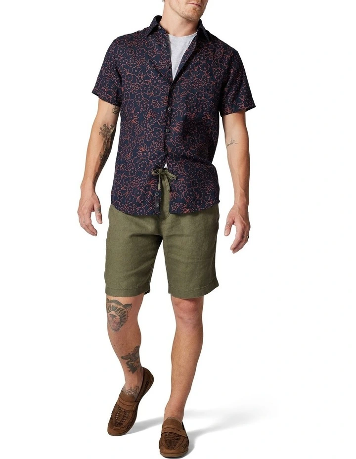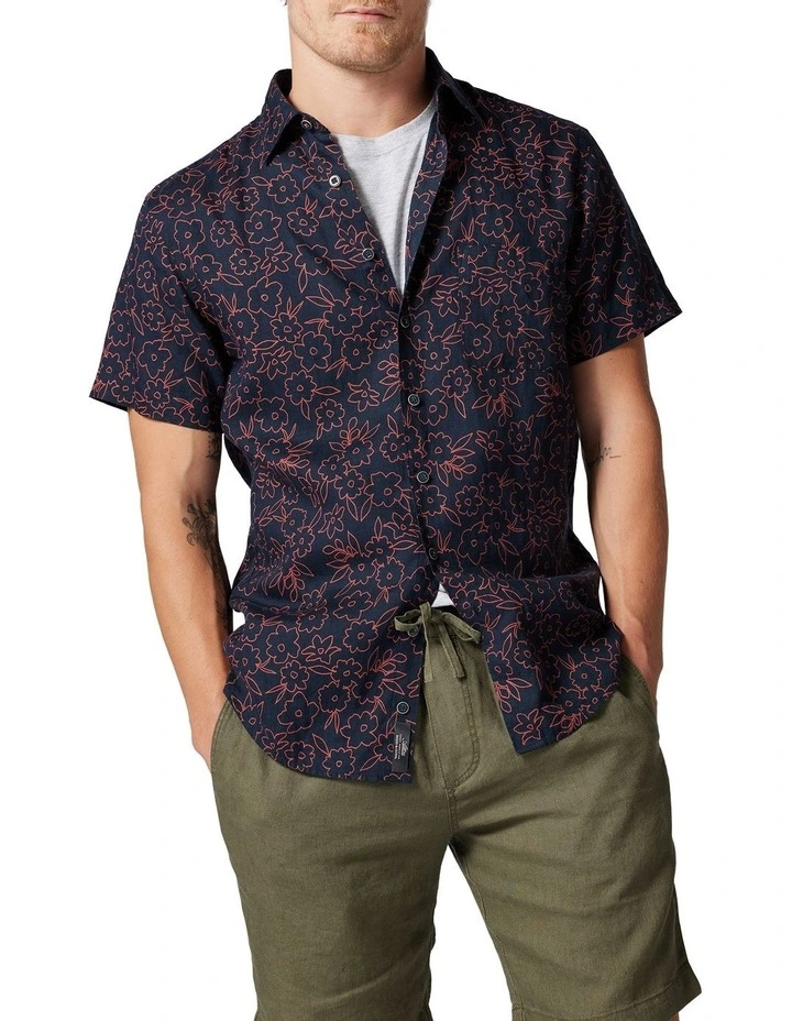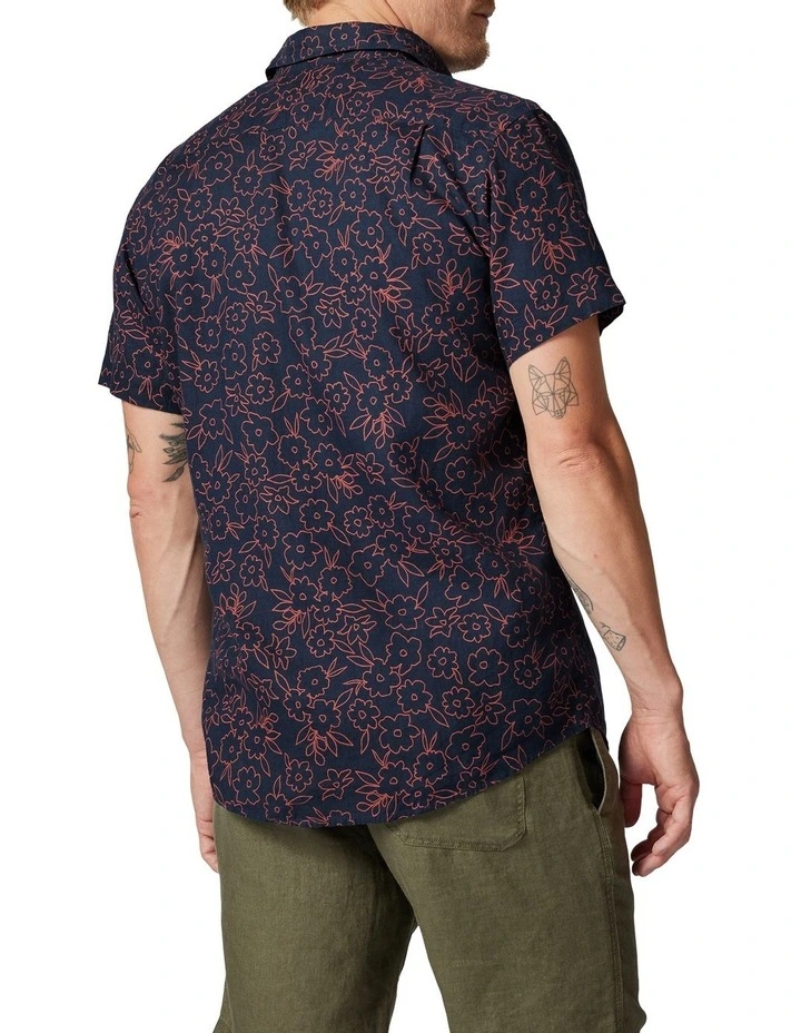 This sophisticated linen shirt is complimented with a playful geo-floral print. Guaranteed to keep you cool and stylish on warm days, its crafted from the finest sustainably grown linen and milled in Northern Italy by Albini, one of the worlds finest mills.