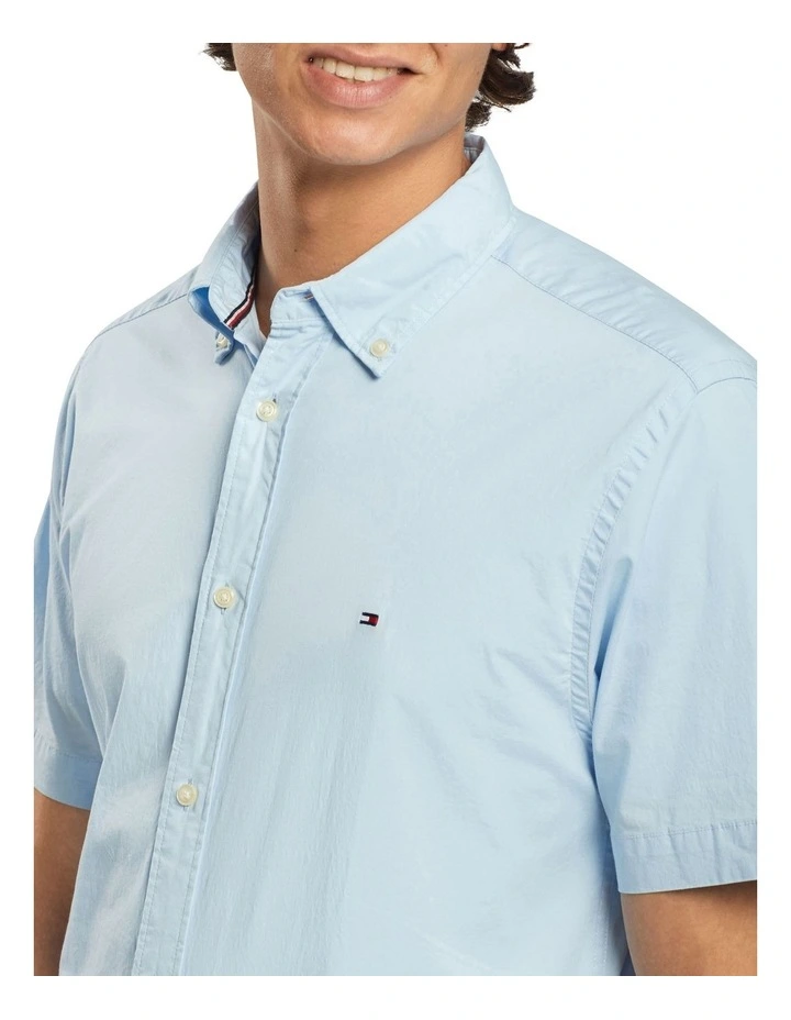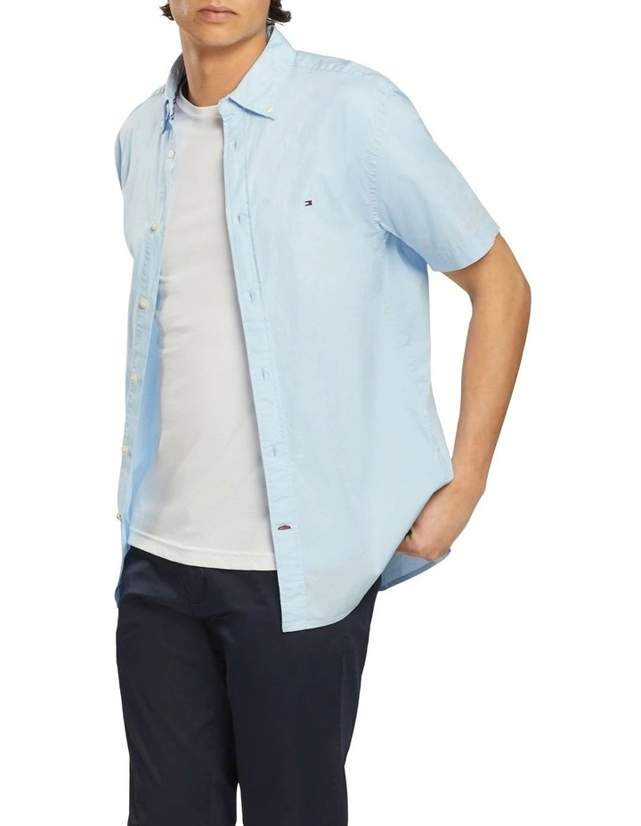 Made from a woven cotton fabrication, this short sleeved button up shirt is comfortable and breathable. Features a button down collar.Β