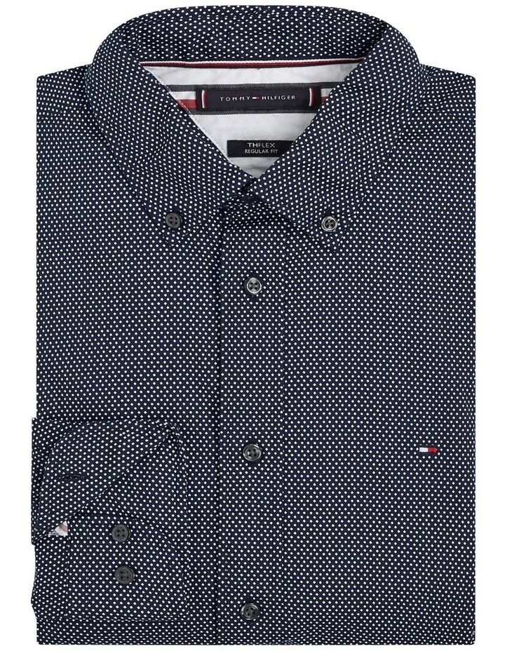 Incorporating Tommy Hilfiger flex technology for comfort, this shirt sports an all-over geo print with a button down collar and buttoned front opening.