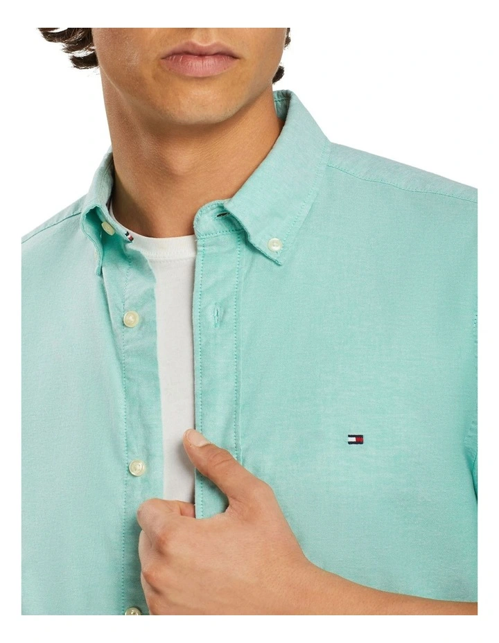 The flex oxford shirt is carefully cut from woven cotton twill. Short sleeved with a button down collar.
