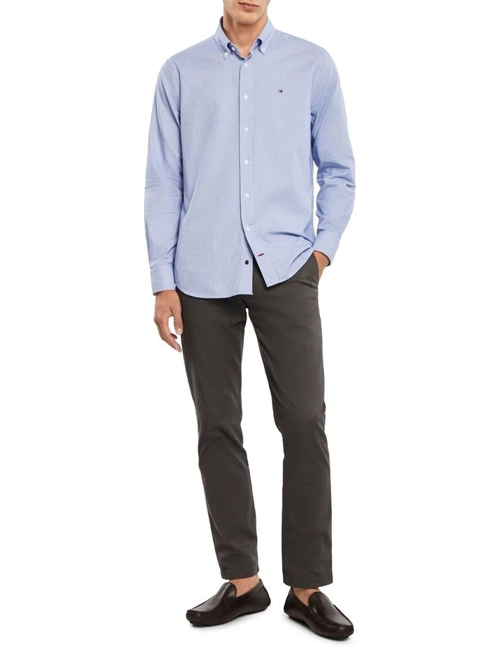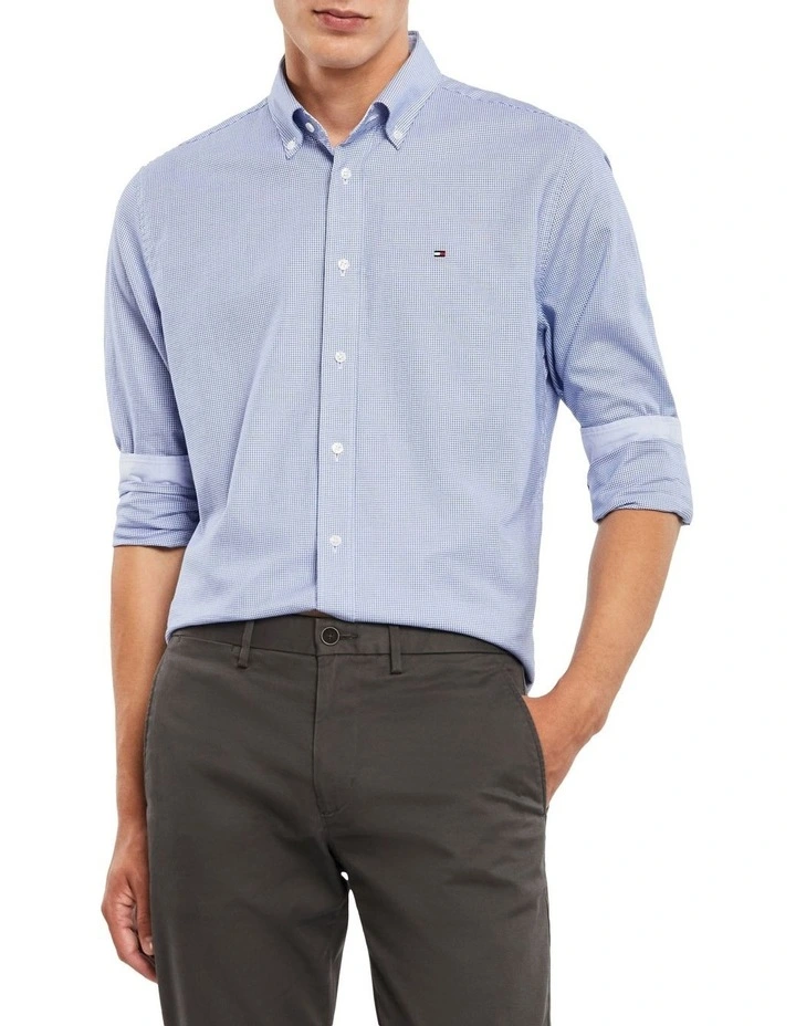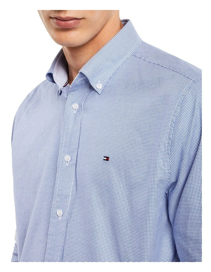 Made from pure cotton, this houndstooth shirt has a button down collar with pearl buttons, and a curved hem.