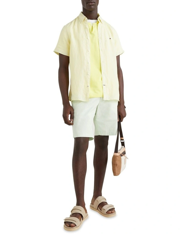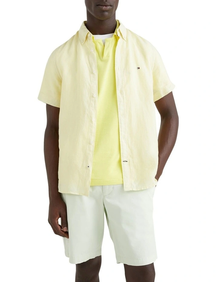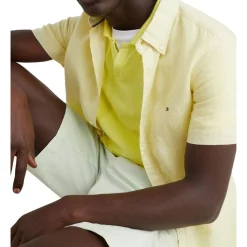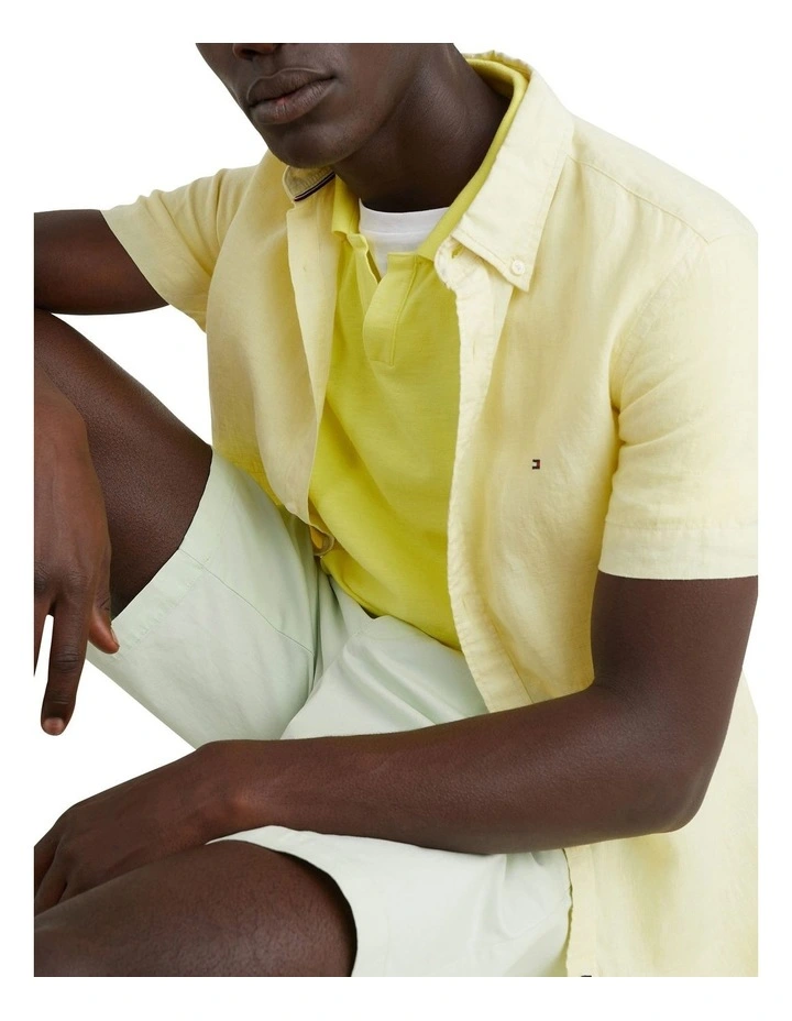 Say hello to crisp linen looks with this short sleeve, pigment-dyed poplin shirt featuring a button-down collar and a casual vibe.Β