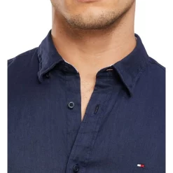Constructed in a regular fit from pure breathable Linen, this button through shirt is the missing link to your wardrobe rotation. Designed with a curved hemline for easy tucking and the iconic Tommy stamp logo on the chest.
