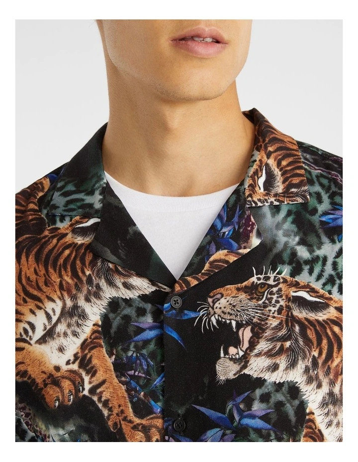 Best Pirce 𧨠Kenji Wonderland Print Short Sleeve Rayon π Shirt In Black π